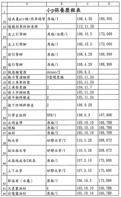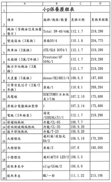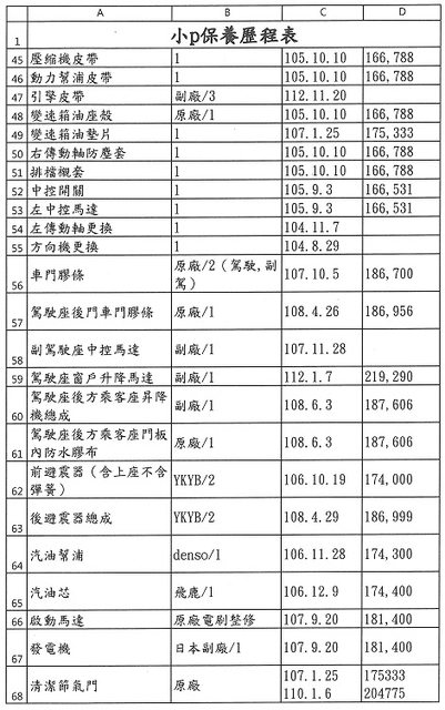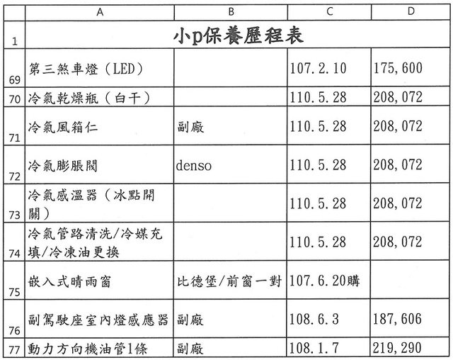 2.接手之後近幾年幾乎都回原廠例行保養及更換機油/變速箱油及煞車油等油類。