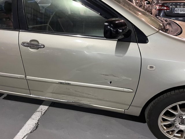 去年與他人擦撞,造成右前門大面積擦傷,故反應在價格上。