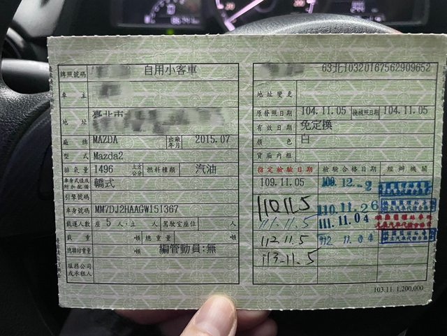 車輛品牌/產地/出廠年月:Mazda2/台灣/2015.7 (2015.11領牌)
