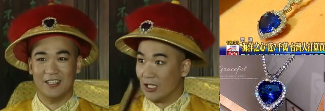 這幾天無意間又回過頭看宰相劉羅鍋,發現乾隆爺的帽冠上有˙˙˙「海洋之心」。↓