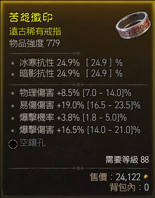 標題[競標] D4 88級 物傷 爆率 爆傷 易傷 戒指