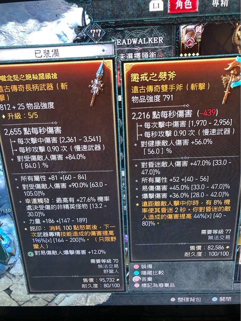 推 fff5fff5 : 我會選右邊 昏迷洗核心 等改天拿到劍詞綴差不多的 07/10 00:13