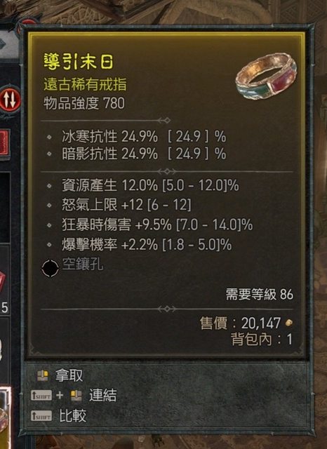 標題[競標] D4野蠻人戒指(資源產生、爆率、怒氣)