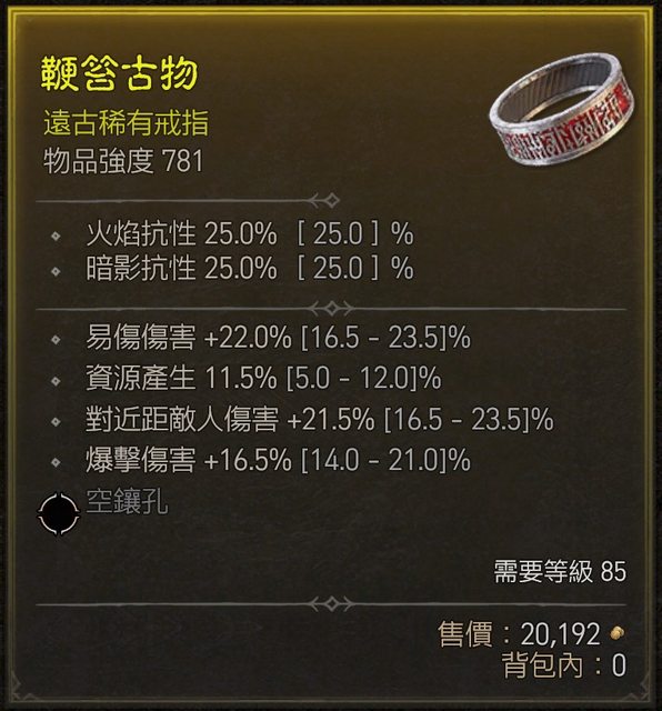 標題[競標] D4 85等 近頂易傷 近頂資源 爆傷 戒指