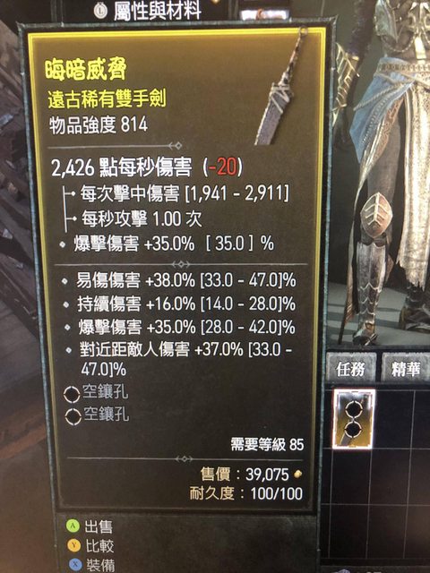 標題[競標] D4 85級雙手劍 814強度 易傷爆傷近傷