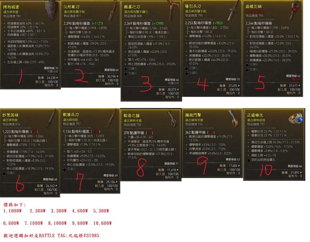 大家好,小弟賣一些便宜的裝備,