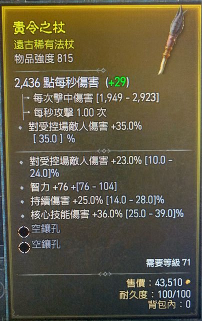 標題[競標] D4 S1 法杖815 等需71