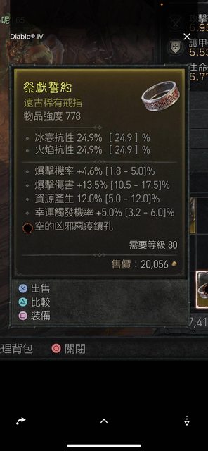 標題[競標] D4賽季戒指 頂資源 近頂爆率 爆傷 幸運