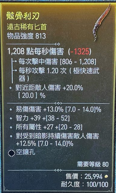 物  品:813匕首 易傷/智力/全屬/受暗影持續傷害敵人傷害 LV80 https://i.imgur.com/hkc57Wz.jpg