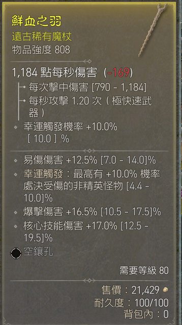 標題[競標] D4 S1 強度808單手魔杖 易傷 爆傷 核心