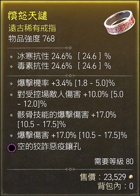 標題[競標] D4 S1 戒指 爆傷 爆率 骸骨