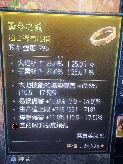 標題[競標] D4 S1 易傷爆傷生命大地爆擊 戒指-橘孔