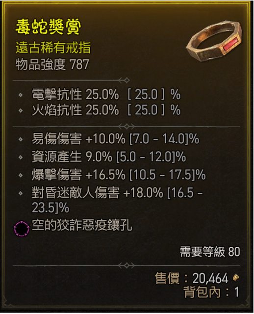 標題[競標] D4 賽季 戒指 易傷/資源/爆傷/昏迷傷