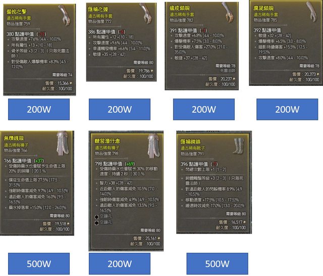 可能有貴有便宜,沒人買就丟商店了 請直接說物品等級+部位,先說先得,以推文時間為主 武器 http://i.imgur.com/pYA3o7E.jpg