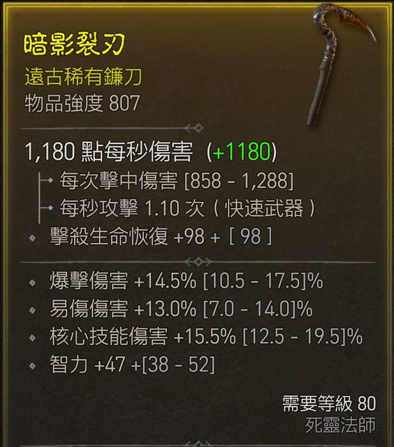 物 品:807單手鐮刀 近頂易傷/爆傷/核心/智力