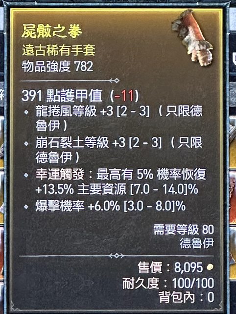 標題[競標] D4 S1滿技能山風狼手套