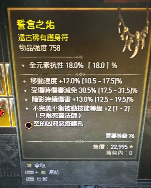 標題[競標] d4賽季 不完美+2 移速 傷害減免 橘洞