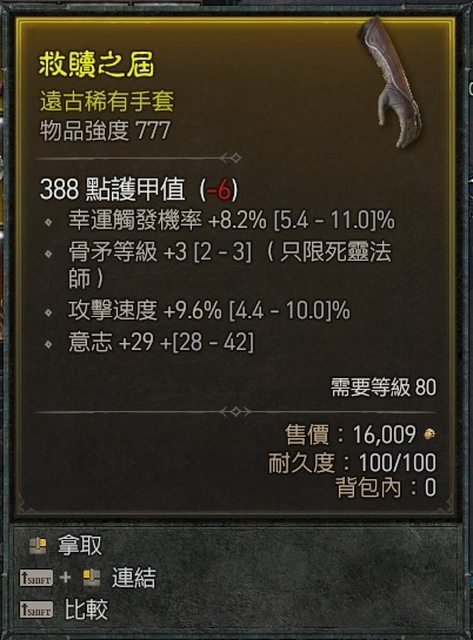 標題[競標] D4 骨矛+3/高攻速/幸運手套