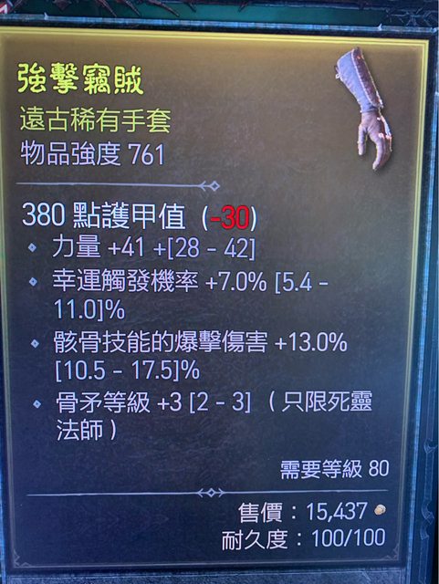 標題[競標] D4 賽季 骨矛3手套 幸運 駭骨爆
