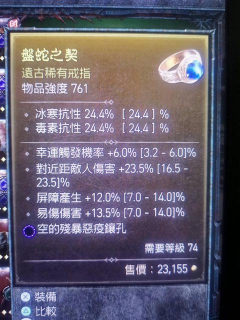 標題[競標] D4 S1 速標 近全頂戒指 易傷/幸運/屏障/