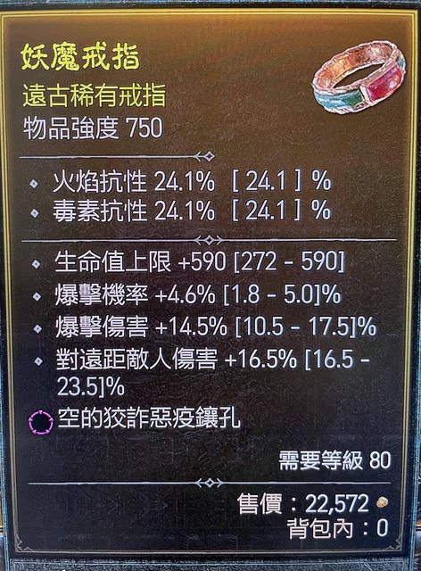 標題[競標] D4 S1戒指 爆率4.6 爆傷14.5 生命上限590