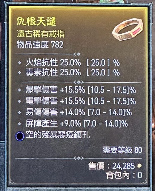標題[競標] D4 S1盾爆狼屏障與爆傷及滿易傷戒指