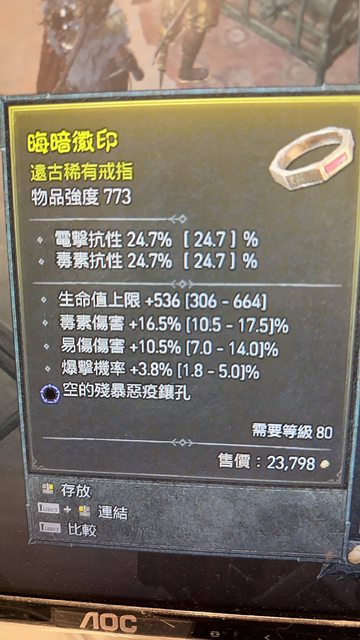 標題[競標] D4S1 爆率易傷生命毒傷 藍孔戒指