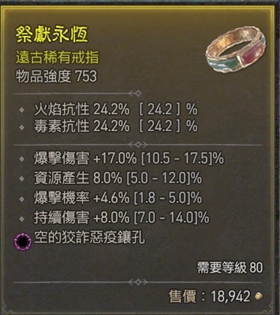 標題[競標] D4 S1 戒指 爆傷/爆率/資源產生