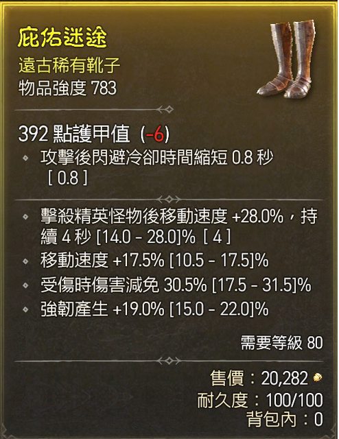 標題[競標] D4 S1 死靈鞋 頂跑速/頂加速/近頂傷減