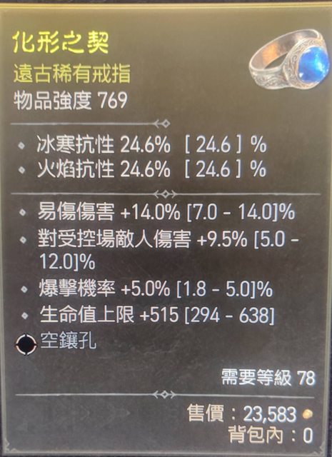 標題[競標] D4 S1 戒指 易傷/爆率頂 生命