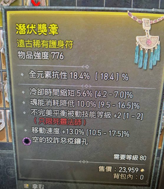 標題[競標] D4s1死靈項鍊 移速不完美魂耗Cd 粉