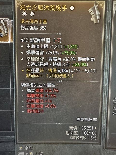 標題[競標] D4S4三太古手套生命、爆傷、易傷機率