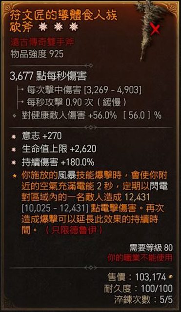 : 物 品:3太古雙手斧意志/生命/持續傷