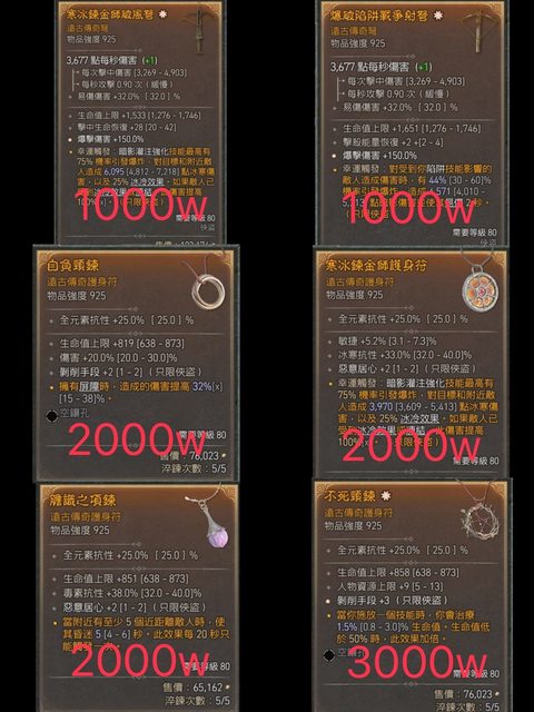 技能項鍊2000-3000w