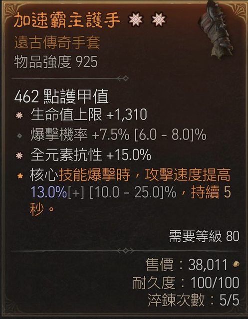 標題[競標] D4 S4 雙太古(生命,全抗)帶爆機手套