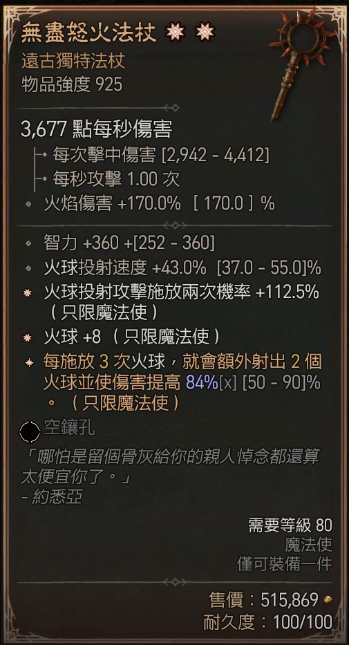 4. 火球法杖,高特效。最少要有太古火球。最好有火球+智力