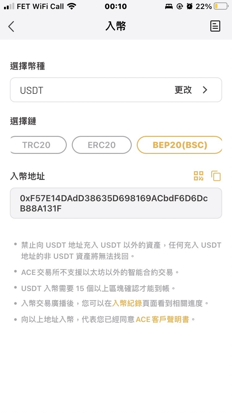 → lk3h5yr: 今天ACE把 BEF20接收地址移除了,剛剛詢問客服是說BSC節 11/13 01:04