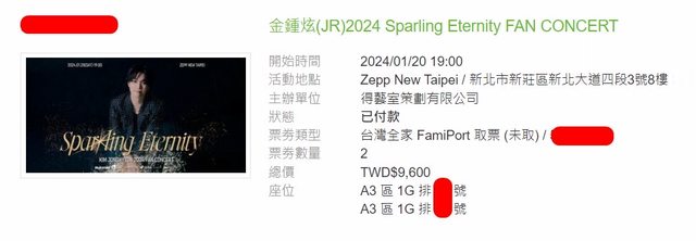 標題[售票] 【售】金鍾炫A3區連號