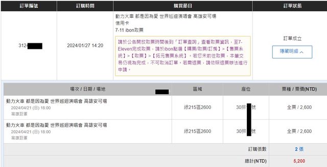 標題[售票] 【售】週日動力火車(綠215連2