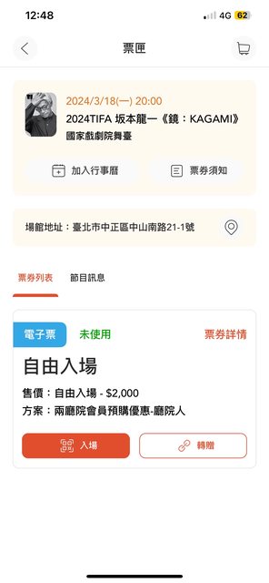 標題[換票] TIFA 坂本龍一鏡:KAGAMI 3/18 20:00