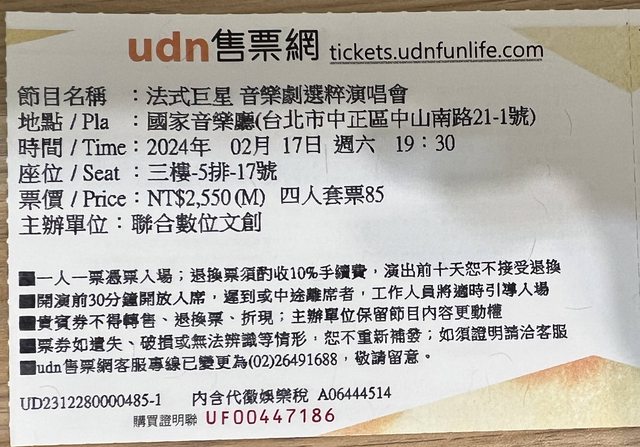 標題[急售] 2/17 法式巨星音樂劇純粹演唱會