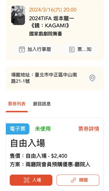交易方式:OPENTIX APP轉贈