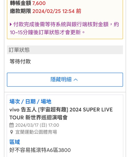 標題[售票] 告五人加場3/17A6兩張