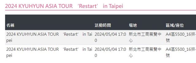 標題[售票] 【售】圭賢A4區16排5500*2