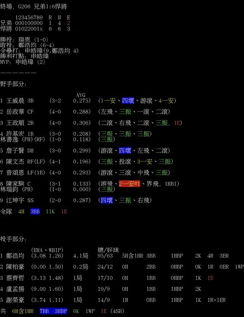 終場,G206 兄弟1:6悍將