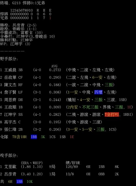 標題[情報] G213 悍將0:1兄弟 全場數據box