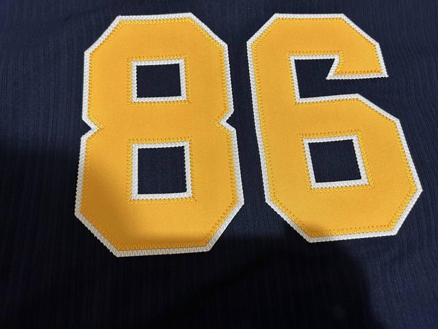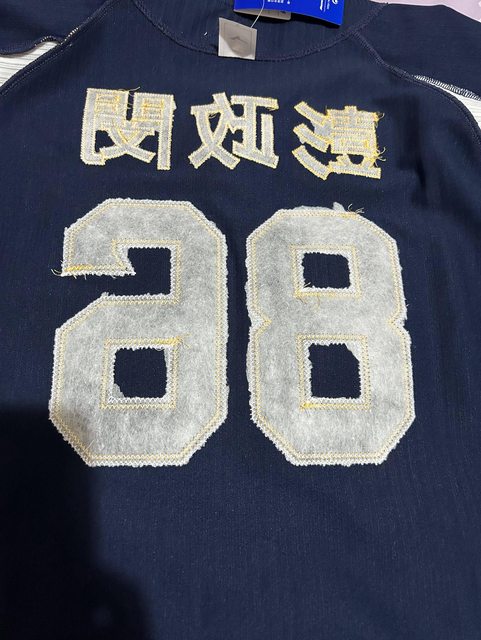 正面小號碼和背面的背號也是雙層電繡,啊嘶~