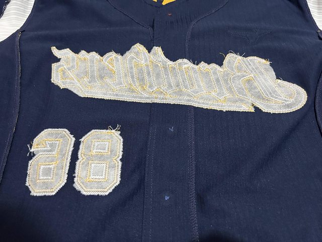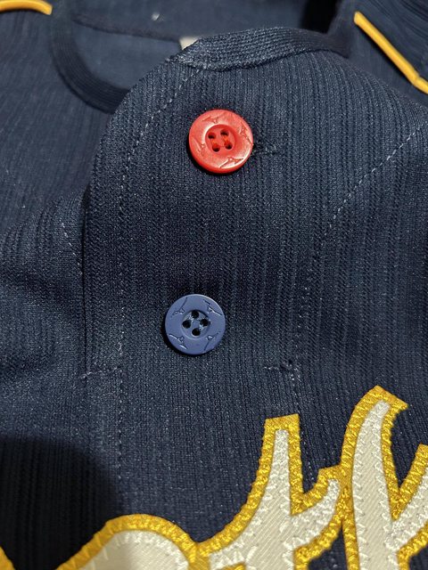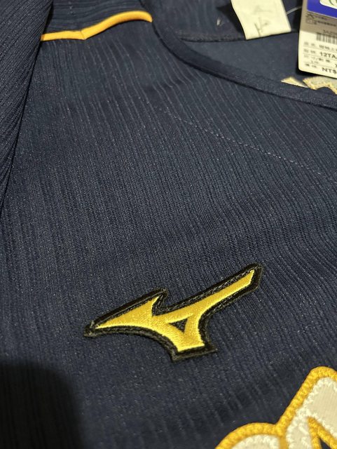 球衣鈕扣也是Mizuno的,很棒的小細節(只有第一顆紅色扣子能打開,其餘為假開扣)