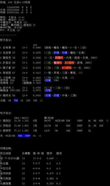 終場,G39 兄弟4:10悍將
