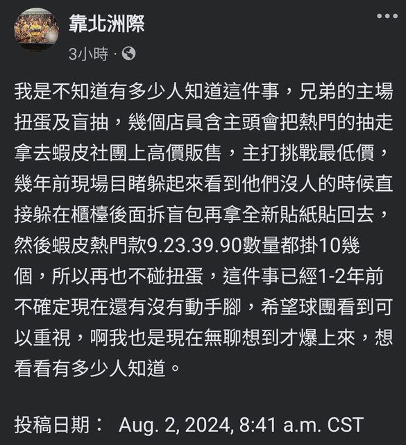 → kicomay: 但上次燈旗盲包封死的,應該蠻多抽到熱門的 08/03 09:27